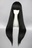 Perruque longue 80 cm - Noire - Frange courte
